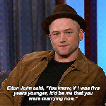 foofygoldfish Uncategorized November 21, 2018December 4, 2018 1 Minute fyeahegerton: Taron Egerton being hit on by old, British legends(Requested by Anonymous) Share this: Share on X (Opens in new window) X Share on Facebook (Opens in new window) Facebook Like Loading... Related Published by foofygoldfish View all posts by foofygoldfish Published November 21, 2018December 4, 2018