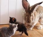 “I’m currently fostering some kittens and they met my continental giant today who is 5 months, look at their faces.”
