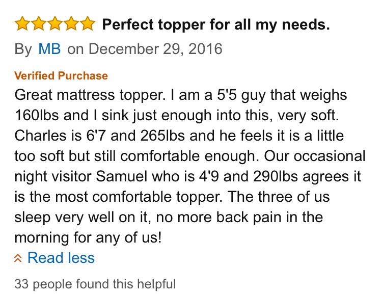 i’m reading mattress topper reviews on amazon and i just love this one…. who are these variously shaped gays