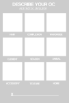For people who wanna make an aesthetic set/mood board but don’t know where to start. Fill in with either a. your character’s favorite or b. what describes your character best.